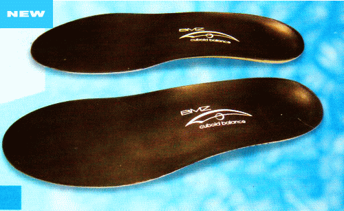 | BMZインソールは「もっと動けるインソールを」という選手の要望から生まれたインソール 特に治療用でないかぎり、ハイアーチや深いヒールカップは必要なのか? 足の中心である立方骨を支えるだけで他の骨も安定し、アーチも生まれてくるのです。 |